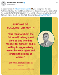The State Bar is commemorating key figures and highlighting social movements on all social media platforms during Black History Month. Follow us on